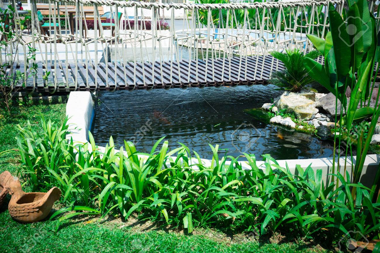 Beautiful Classical Design Garden Fish Pond In A Gardening Backg