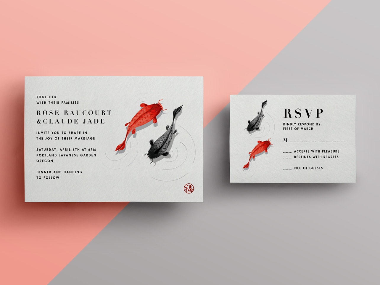 Koi Fish Pond Asian Japanese Watercolor Wedding Invitation Etsy